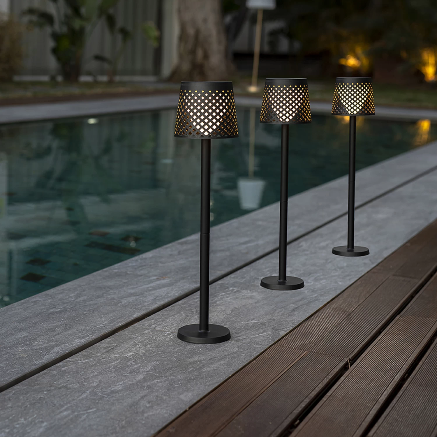 Die LED-Solarleuchte Greta ist ein echtes Multitalent und überzeugt durch ihre vielfältigen Nutzungsvarianten. Sie kann beispielsweise als Tischleuchte (Höhe 30 cm oder 64 cm), als Erdspießleuchte (Höhe 46 cm oder 80 cm) sowie als Wandleuchte verwendet werden. An ihrer Oberseite verfügt Greta über ein integriertes Solarmodul, sodass sie ohne zusätzliches Stromkabel genutzt werden kann. Es ist aber auch möglich, die Leuchte über das mitgelieferte USB-Kabel aufzuladen. Der praktische Dämmerungssensor schaltet die Solarleuchte ein, sobald es dunkel wird.