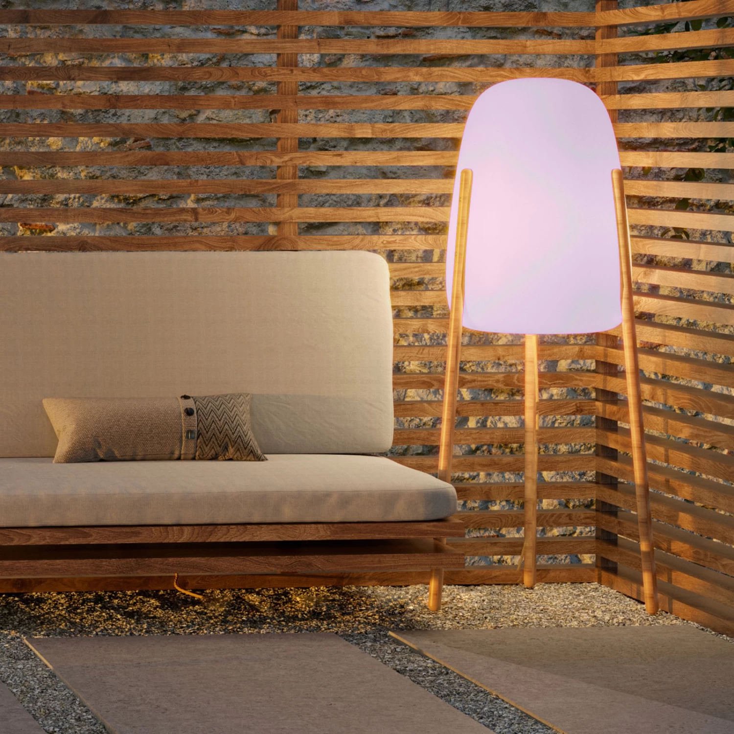 LED-Stehleuchte Rocket mit Holzgestell, Akku und Solarpanel