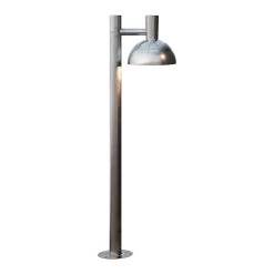 Die Pollerleuchte Arki 100 besteht aus einem robusten Stab mit Sockel und einem nach unten gerichteten Schirm. Ganz aus verzinktem Metall ist die Wegelampe auch in Salzwassernähe geeignet angebracht zu werden und hält dank Spritzwasserschutz ebenso Wind und Wetter stand. Um für Einfahrten oder Terrassen nützliches und blendfreies Orientierungslicht zu spenden, wird das Licht simpel auf den Gartenweg geleitet ohne zu blenden. Ein passendes Leuchtmittel kann über das Zubehör direkt mitbestellt werden und wird durch einen Kunststoffdiffusor geschützt. Das Design stammt von dem Künstler Bønnelycke MDD aus Dänemark.