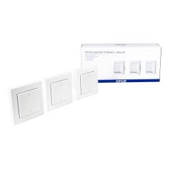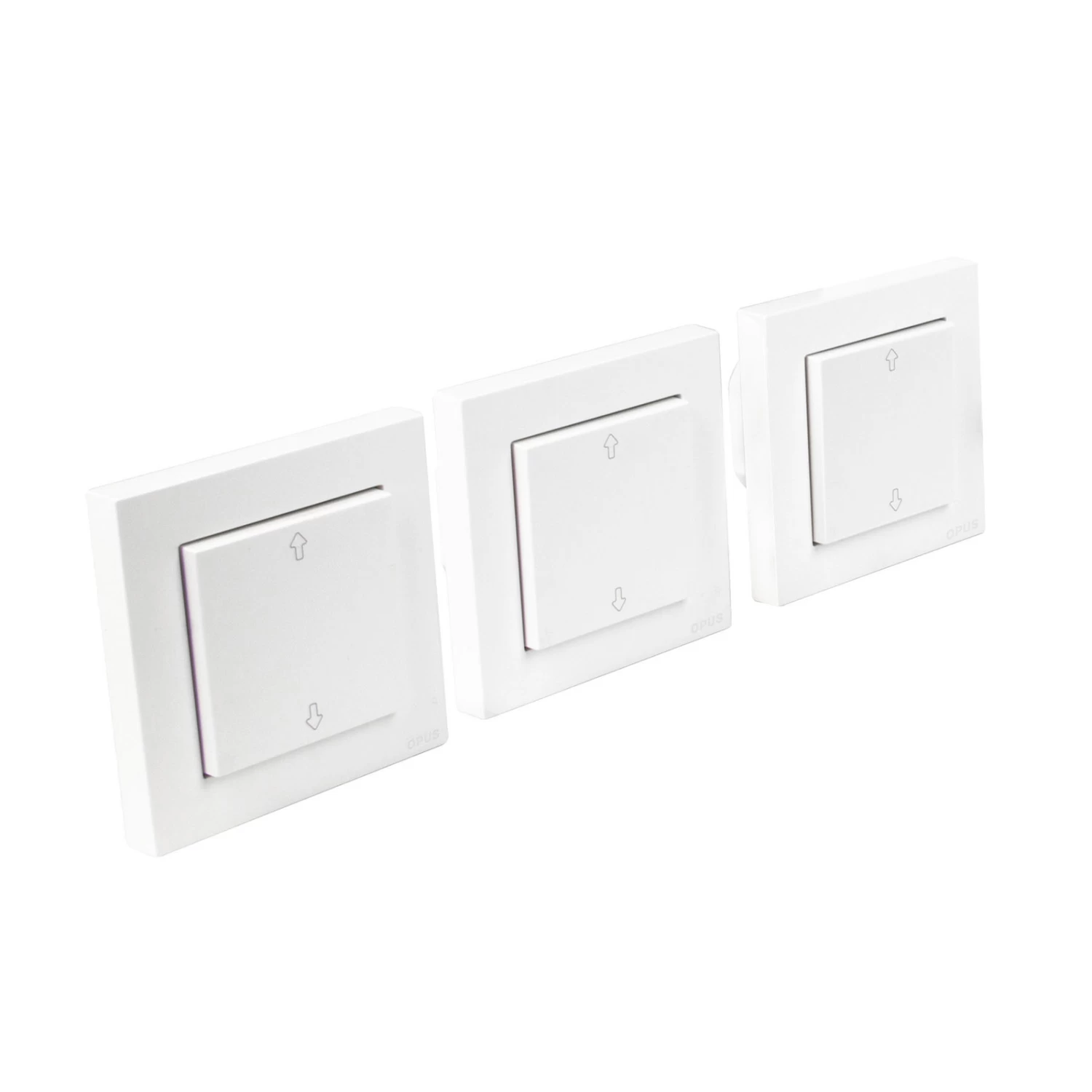 Das vorkonfigurierte und einbaufertige Starter-Set OPUS EasyStart Rollladen/Jalousie besteht aus zwei Unterputzschaltern OPUS Bridge Rollladen/Jalousie und einem OPUS Wandsender, der frei positionierbar ist. Über den Unterputzschalter wird einmal an jedem Fenster die Verschattung einzeln gesteuert und über den Wandsender lassen sich beide Rollläden gemeinsam steuern. Da dieser Sender kabel- und batterielos arbeitet, kann er überall dort positioniert werden, wo er am besten erreichbar ist und benötigt wird.
