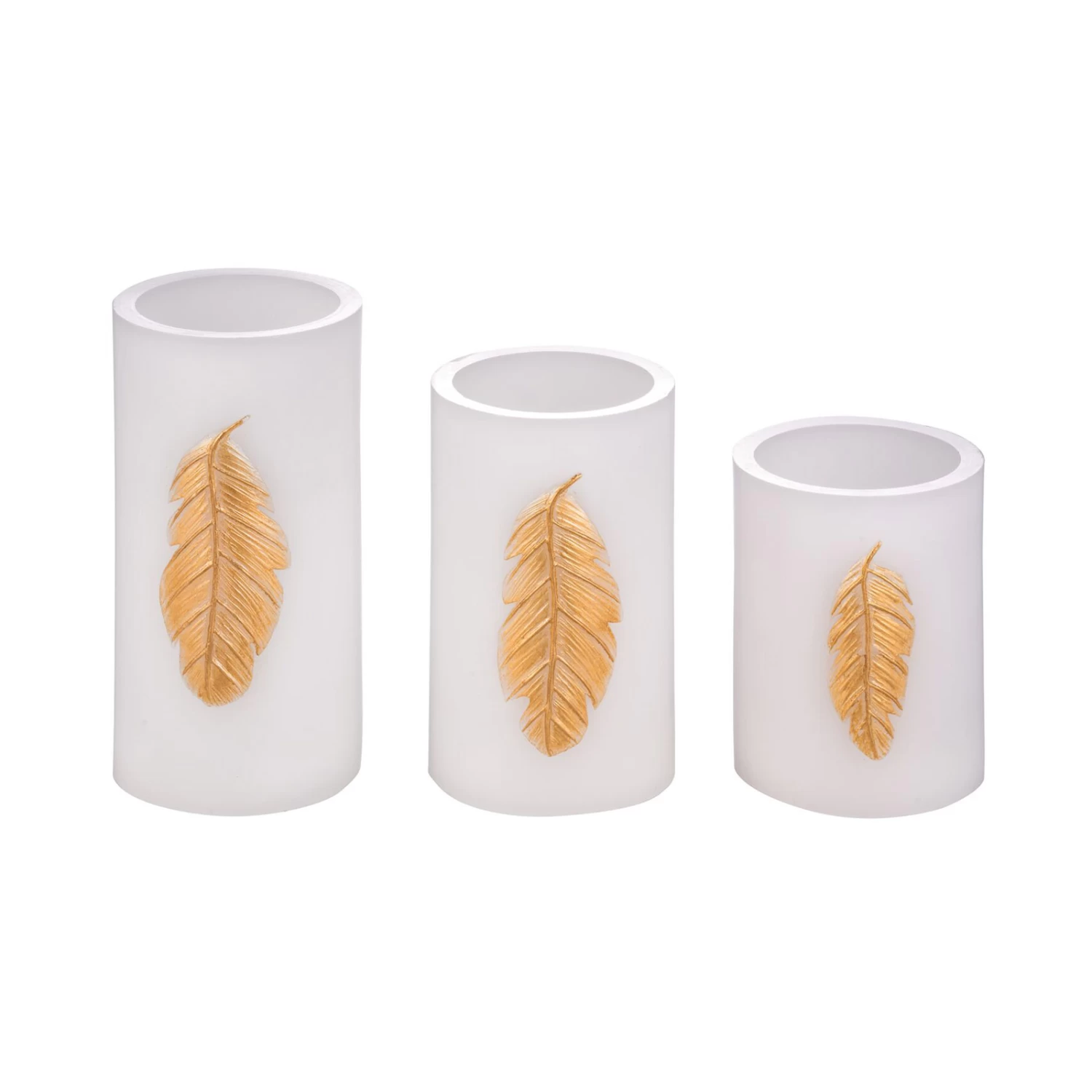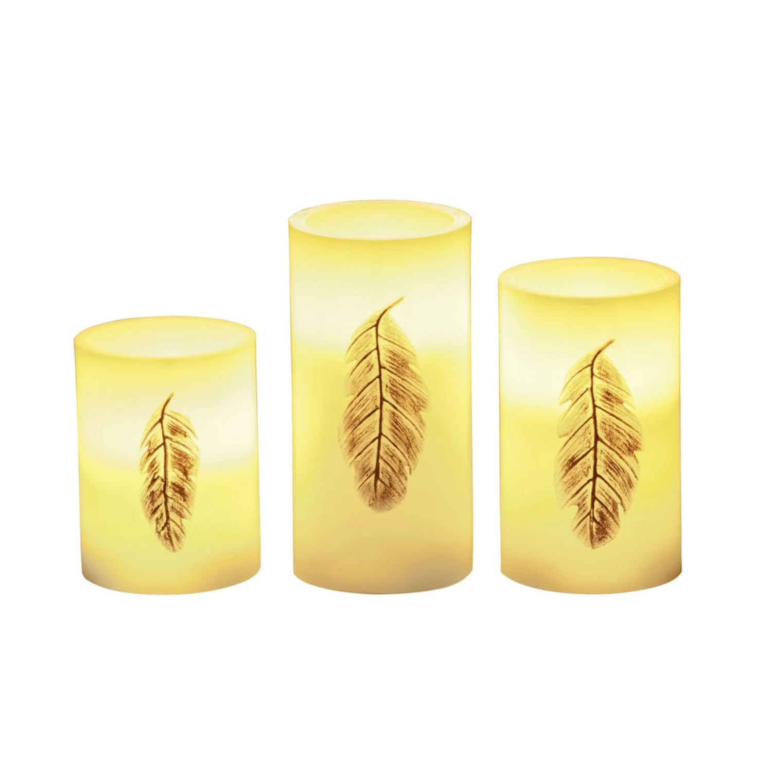 Federschmuck auf Echtwachs: Das Golden Feather Candle LED-Kerzen 3er Set