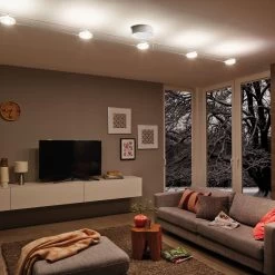 Ob gerade, schräg oder verwinkelt – ein Seilsystem passt in jeden Raum. Dieses Seilsystem DiscLED I aus der Smart-Home-Serie von Paulman bietet grenzenlose Gestaltungsmöglichkeiten. Per kostenloser Paulmann Bluetooth App lässt sich per Smartphone oder Tablet dank intelligenter Weißlichtsteuerung Tunable White die Lichtfarbe der Spots variieren, vom Arbeitslicht in der Lichtfarbe Tageslicht bis hin zu warmweißer Beleuchtung. Außerdem kann das Licht gedimmt werden.