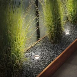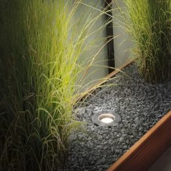 Mit der Bodeneinbauleuchte Floor aus Edelstahl lassen sich im gesamten Außenbereich, auch im begehbaren Bereich, dekorative Lichtakzente setzen. Die Bodeneinbauleuchte ist mit bis zu 500 kg belastbar. Sie passt in eine Einbauöffnung mit 10,5 mm Durchmesser und kann mit einem GU10-Leuchtmittel nach Wahl bis zu einer maximalen Wattage von 10 W bestückt werden. Sie ist mit einer 30 cm langen Netzanschlussleitung ausgestattet und wird inklusive Einbaudose geliefert, die nicht nur den Einbau erleichtert, sondern auch die Entnahme bei späterer Wartung bzw. beim Wechsel des Leuchtmittels.