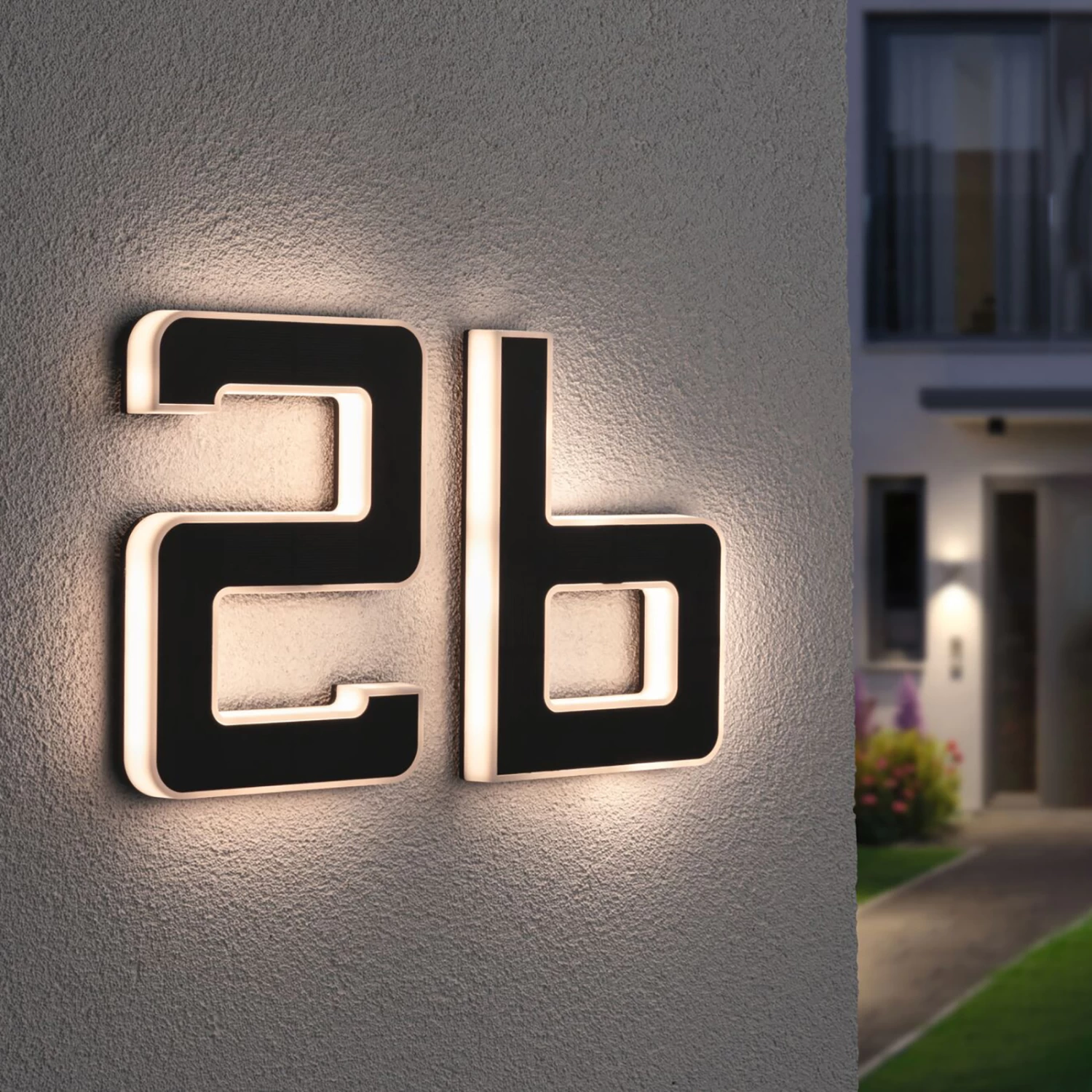 Outdoor-Solar-Buchstabe in Schwarz mit warmweißer Beleuchtung