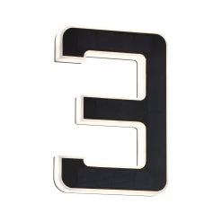 Die Solar-Hausnummer ist mit einem unsichtbar in die Ziffer eingearbeiteten Solarmodul bestückt, das den integrierten, wechselbaren Akku am Tag auflädt, so dass die leuchtende Hausnummer völlig unabhängig von einem Stromanschluss an der Fassade, an der Grundstücksmauer oder jedem anderen Ort angebracht werden kann. Sobald es dunkel wird, wird die Hausnummer durch die integrierten, warmweiß leuchtenden LEDs indirekt beleuchtet. Das Licht strahlt seitlich durch die satinierte Umrandung der Ziffer.