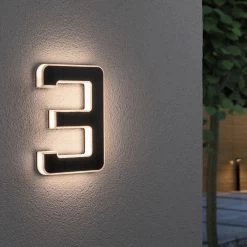 Outdoor-Solar-Hausnummer in Schwarz mit warmweißer Beleuchtung