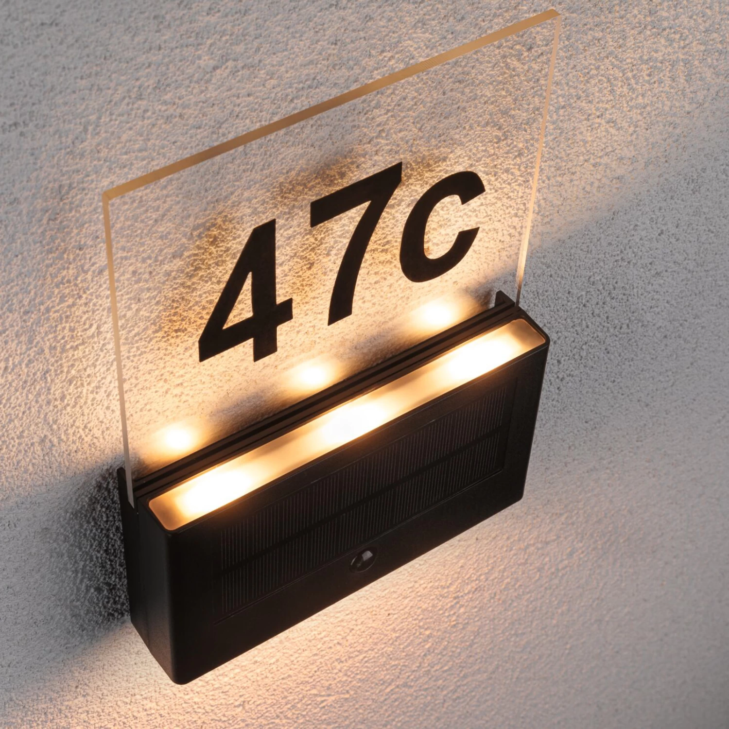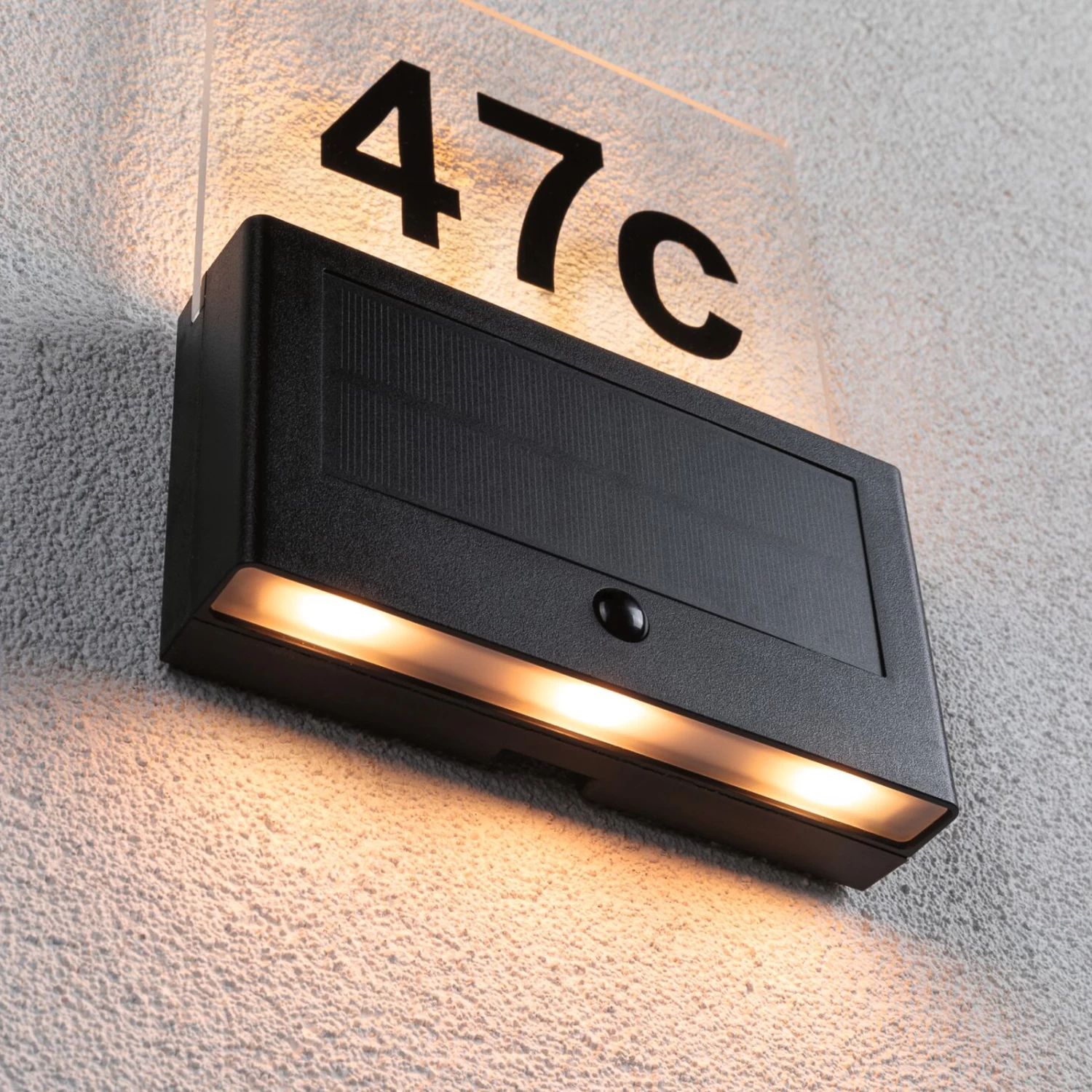 Die Solar Hausnummernleuchte Neda eignet sich besonders gut für Außenwände, wo kein direkter Stromanschluss vorhanden ist. Leuchtende Hausnummern erleichtern im Dunklen den Gästen und Postboten das Suchen der richtigen Nummer. Die Solarleuchte lässt sich einfach frei platzieren. Durch die Sonneneinstrahlung lädt sich der Akku tagsüber auf und gibt dann die gespeicherte Energie durch Leuchten wieder ab. Das Licht wird durch den Dämmerungssensor automatisch eingeschaltet. Die Hausnummer wird mit 20 % der Lichtleistung nach Einbruch der Dämmerung betrieben. Sobald sich jemand nähert und Bewegung im Erfassungsbereich des Sensors wahrgenommen wird, schaltet die Leuchte für 15 Sekunden auf 100%. Die Solarleuchte ist mit einer Lichtfarbe von 2.200 K besonders insektenfreundlich, denn dieser Wert liegt außerhalb des sichtbaren Bereiches für Insekten, somit werden diese nicht von der zusätzlichen Lichtquelle angezogen. Sie schützt die Insekten aktiv, ohne dabei den Nutzen für den Menschen zu vernachlässigen.