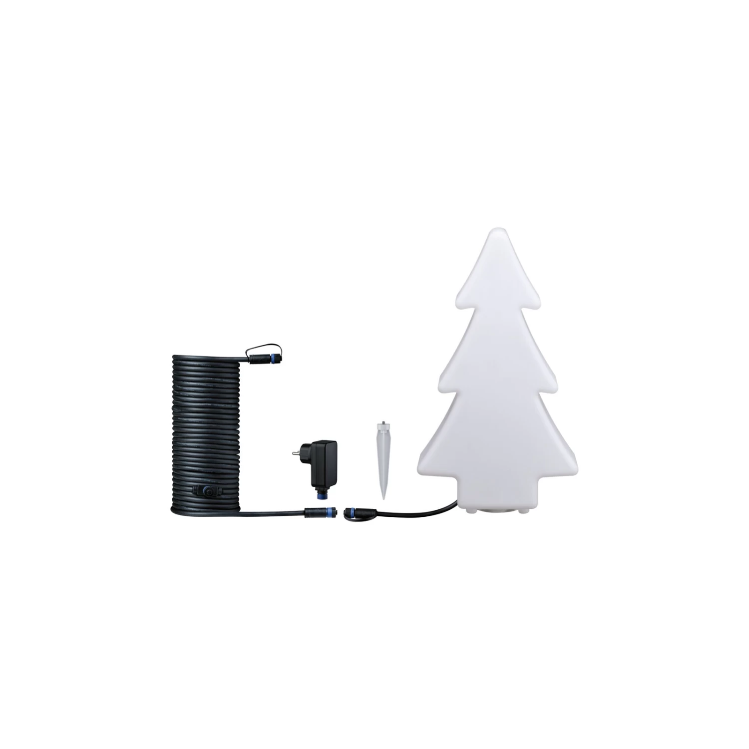 Die Plug & Shine Dekoleuchte Tree ist – wie es der Name vermuten lässt – der Silhouette eines Baums nachempfunden. Sie besteht aus weißem, durchscheinendem Kunststoff. Die Baumfigur erstrahlt im Betrieb gleichmäßig und wirkt nachts als stimmungsvoller Akzent, der je nach Wunsch den Garten (Erdspieß liegt bei) oder die Terrasse dekorativ ergänzt.