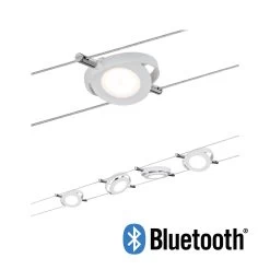 Ein besonderes Feature des Seilsystems ist die Steuerung der Strahler via Bluetooth vom Smartphone oder Tablett aus. Hierzu steht für iOS und Android die kostenlose Paulmann Home App zur Verfügung. Per App kann die Lichtfarbe von einem gemütlichen Warmweiß bis hin zum kühlen Tageslicht verändern werden. Zudem lässt sich auch die Helligkeit der vier Strahler dimmen.
