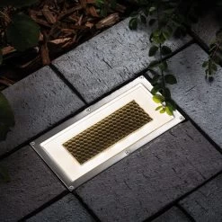 Die moderne Leuchte aus Edelstahl und Polycarbonat ist im Boden zu integrieren. Die Leuchte funktioniert nicht über eine Stromversorgung, sondern über Solarzellen. Die energiesparenden LEDs sind damit energieeffizient zu betreiben. Die elegante Leuchte erhellt begehbare Außenbereiche und ist mit 500 Kilogramm belastbar. Gegen Regen ist die Bodeneinbauleuchte durch eine wasserdichte Verarbeitung gut geschützt. Sie scheint in einem angenehmen Licht und wird mittels Dämmerungssensor und Akku betrieben. Ein Ladevorgang dauert bei direkter Sonnenausrichtung lediglich sechs bis acht Stunden. Die Leuchtdauer reicht zwischen acht bis hin zu 10 Stunden.