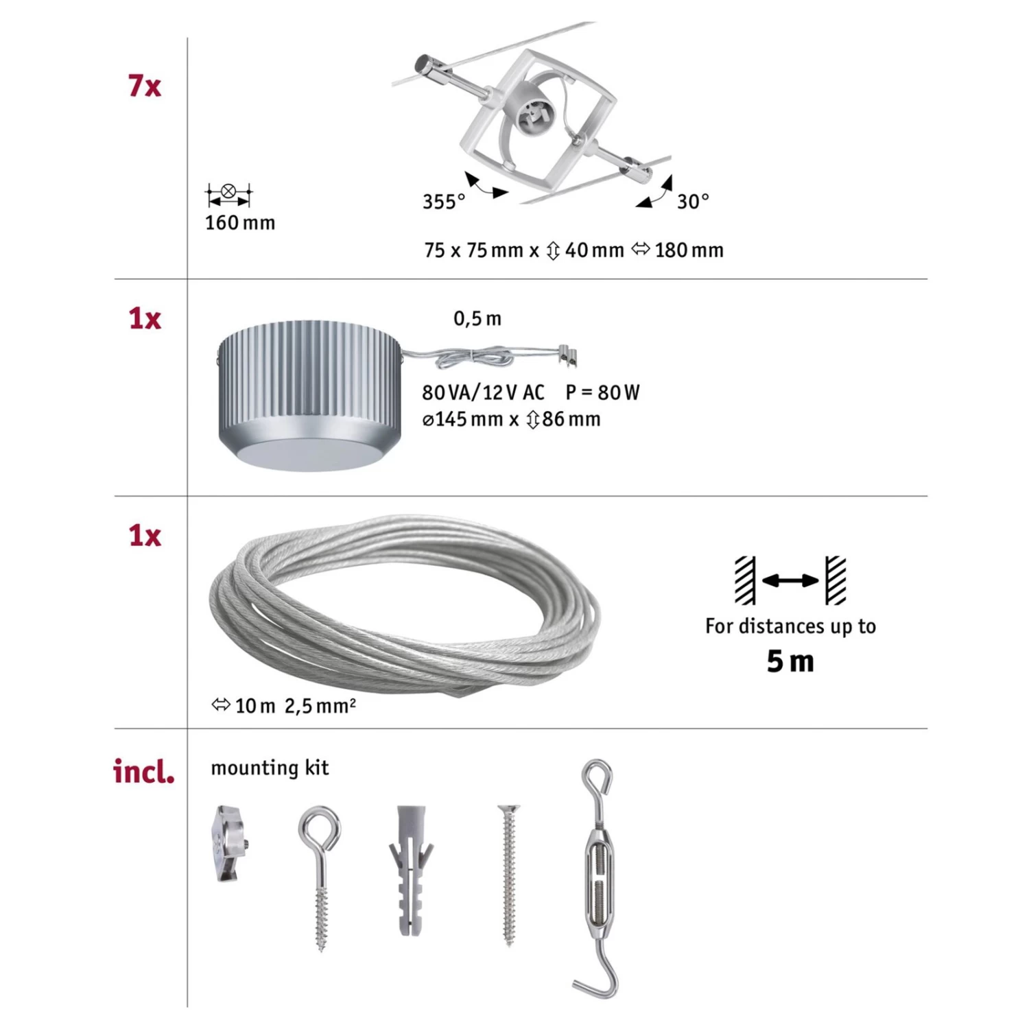 Siebenflammiges Seilsystem Wire Mac II in Chrom matt