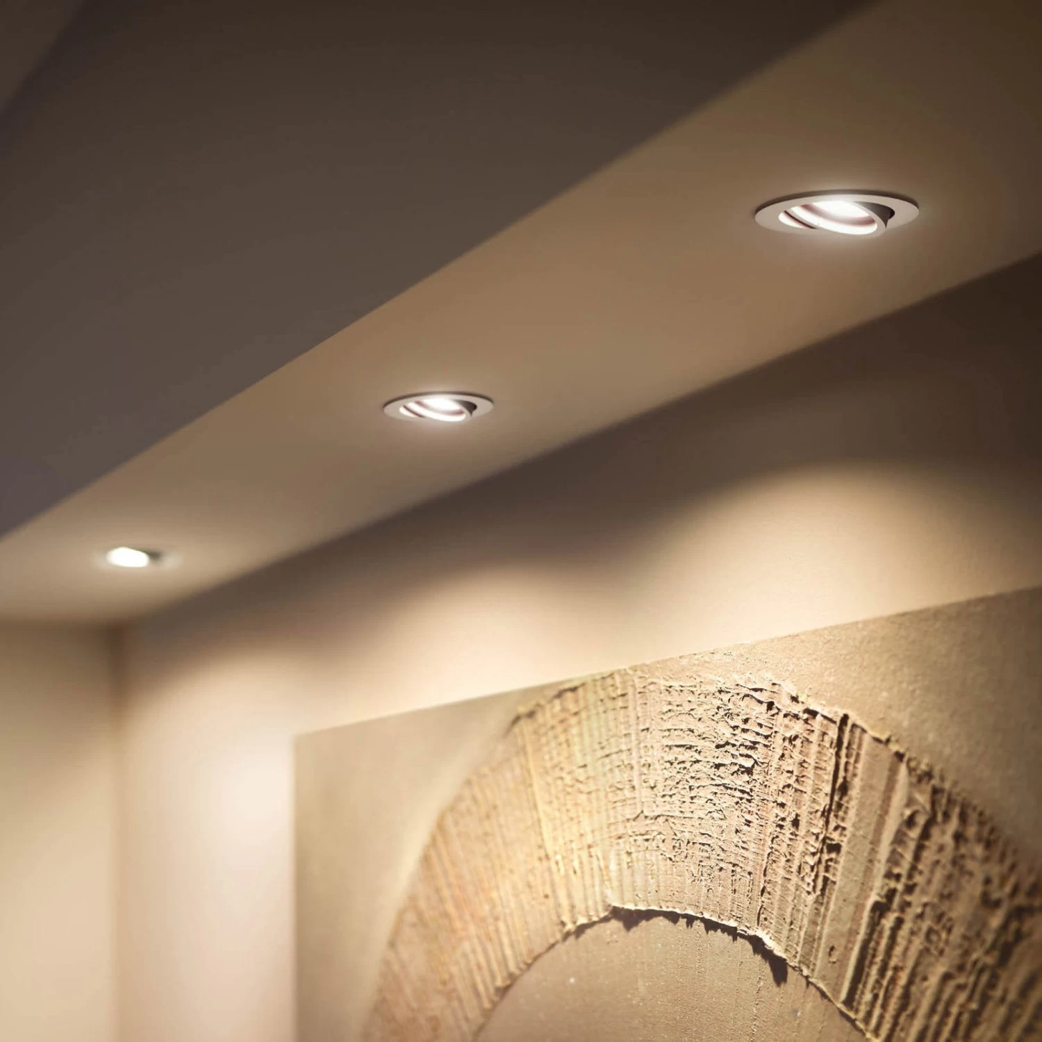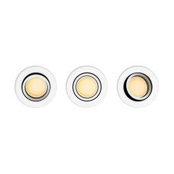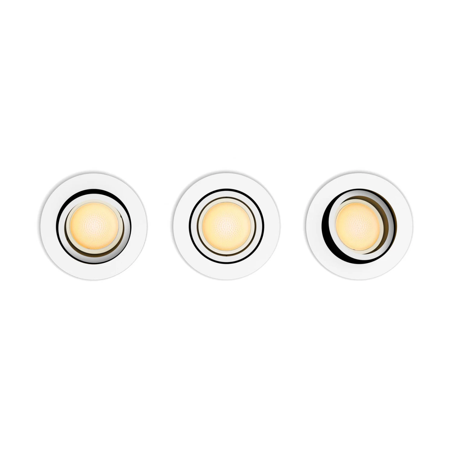 Der moderne, runde LED-Einbauspot Milliskin aus der Philips Hue Produktfamilie ist mit einem smart steuerbaren Leuchtmittel bestückt. Dieses findet in einem rundum schwenkbaren Leuchtenkopf Platz und bietet eine variable Helligkeit und Farbtemperatur.