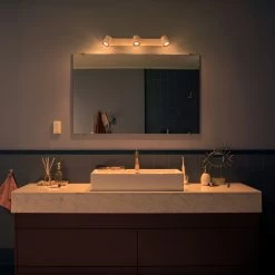 Bei der Philips Hue LED-Wandleuchte Adore sorgen insgesamt drei sowohl dreh- als auch schwenkbare LED-Spots für ein individuelles und bedarfsgerechtes Licht im Badezimmer. Dies wird vor allem durch die Verstellbarkeit der Lichttemperatur und Helligkeit erzielt, die sich mit Hilfe des mitgelieferten Hue-Dimmschalters variabel einstellen lässt. Der Dimmschalter bietet bereits vier vorinstallierte Lichtszenen, die entweder ein erfrischend helles oder warmes und stimmungsvolles Licht zaubern. Auch via Hue-App mit dem Tablet oder Smartphone lässt sich das Ganze schalten, denn zum Beispiel eingebunden in ein Hue-System lässt sich das Licht auch von unterwegs steuern, so dass man sich nie mehr die Frage stellen muss, ob man das Licht im Bad auch wirklich ausgeschaltet hat.