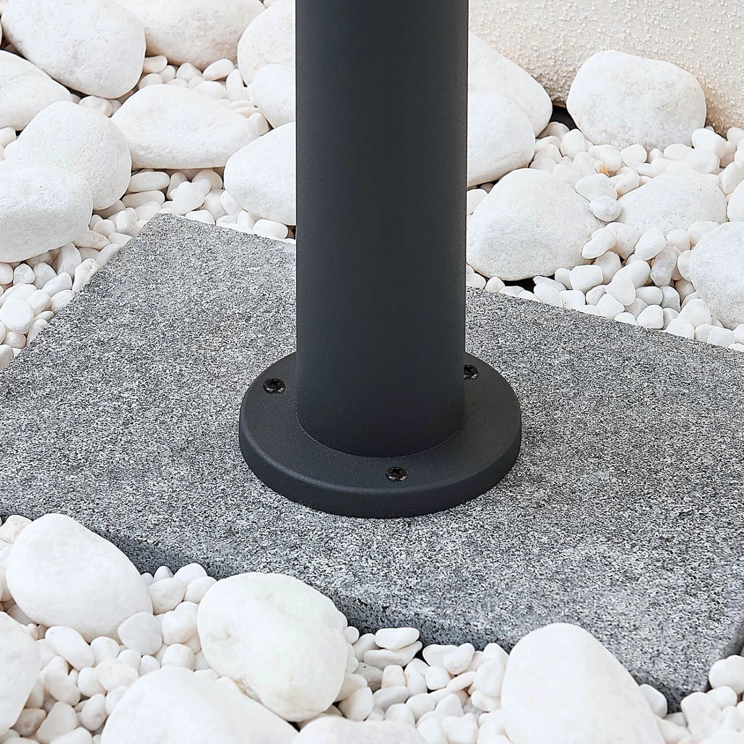Dunkelgraue Pollerleuchte Alvaro im skandinavischen Stil mit zwei ringförmigen Blenden