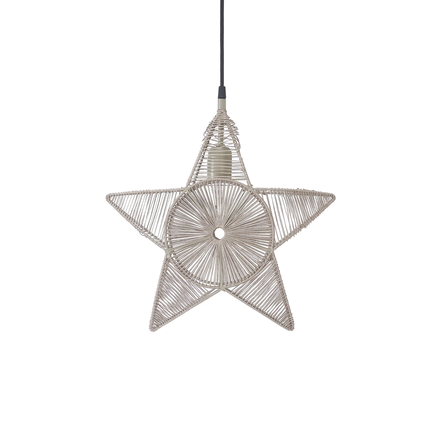 Der Weihnachtsstern Regina ist aus einem Metallrahmen gefertigt, der von Hand mit Garn umwickelt wird. Eine moderne, geometrische Form, die zum skandinavischen Stil passt und ein schönes Licht im Raum verbreitet. Mit dieser Leuchte zieht weihnachtliche Atmosphäre ins Zuhause ein. Mit Hilfe einer kleinen Öffnung an der Unterseite gelangt man in das Innere des Sterns und kann das Leuchtmittel ganz einfach einschrauben. Das schwarze Textilkabel ist ca. 3,5 m lang und mit EU-Wandstecker und einer E27-Fassung ausgestattet. Das Leuchtmittel ist nicht enthalten, passende Lampen können über Zubehör extra bestellt werden.