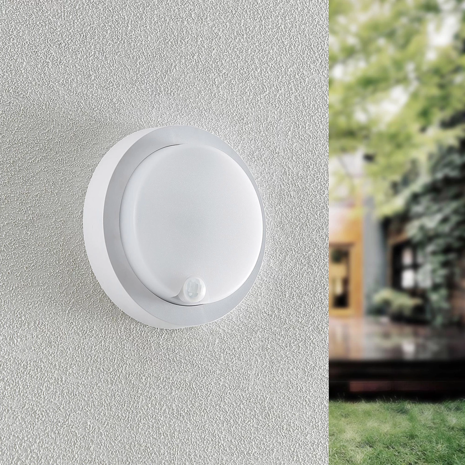 Weiße LED-Außenwandleuchte Lakin mit Bewegungsmelder