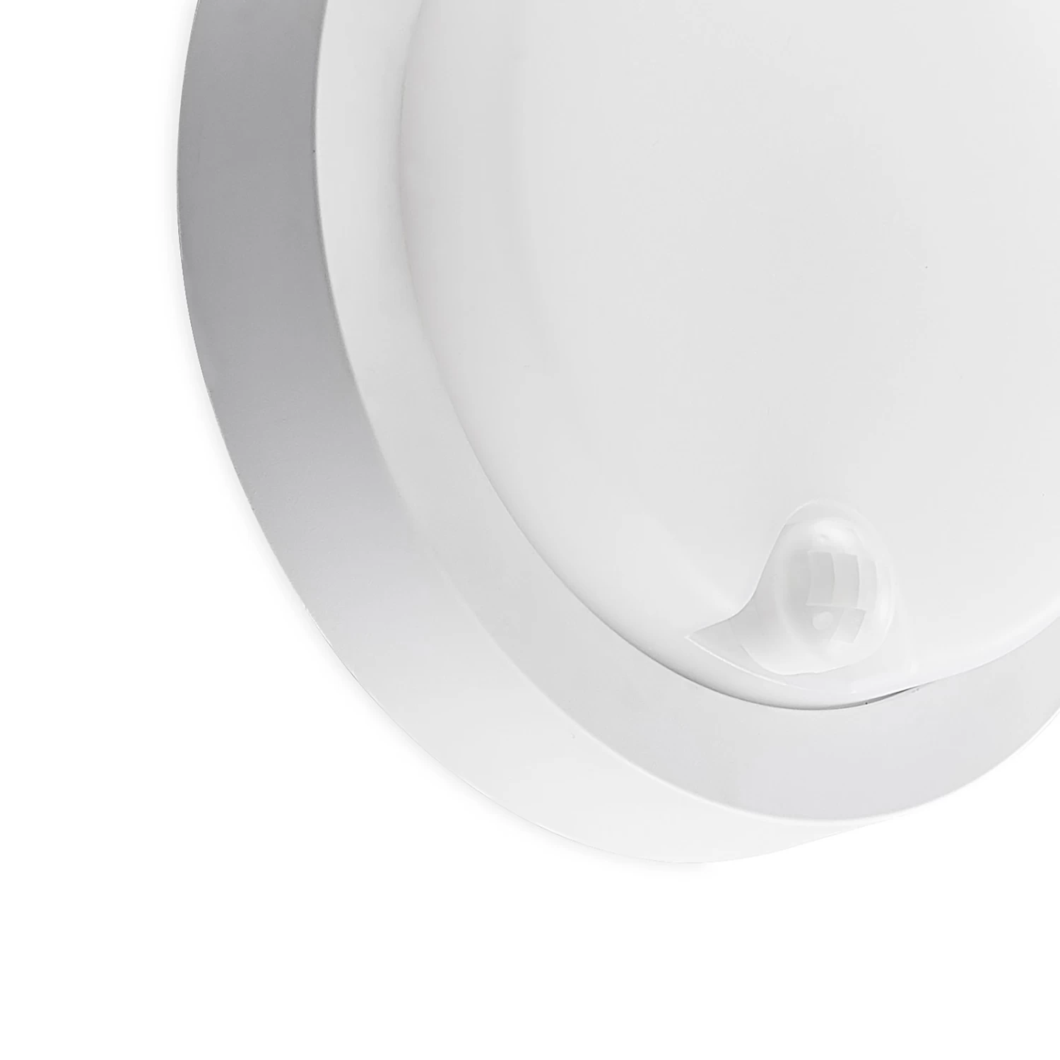 Die LED-Außenwandleuchte Lakin überzeugt mit ihrem schlichten Design und den technischen Features. Sie wurde aus langlebigem Kunststoff hergestellt und ganz in Weiß gestaltet. Ihre runde Bauform wirkt klassisch und lässt sich in vielerlei Umgebungen einfügen. Die Leuchte besitzt einen eingebauten Bewegungsmelder mit Reichweite von maximal 8 Metern und einem Erfassungswinkel von 100°.