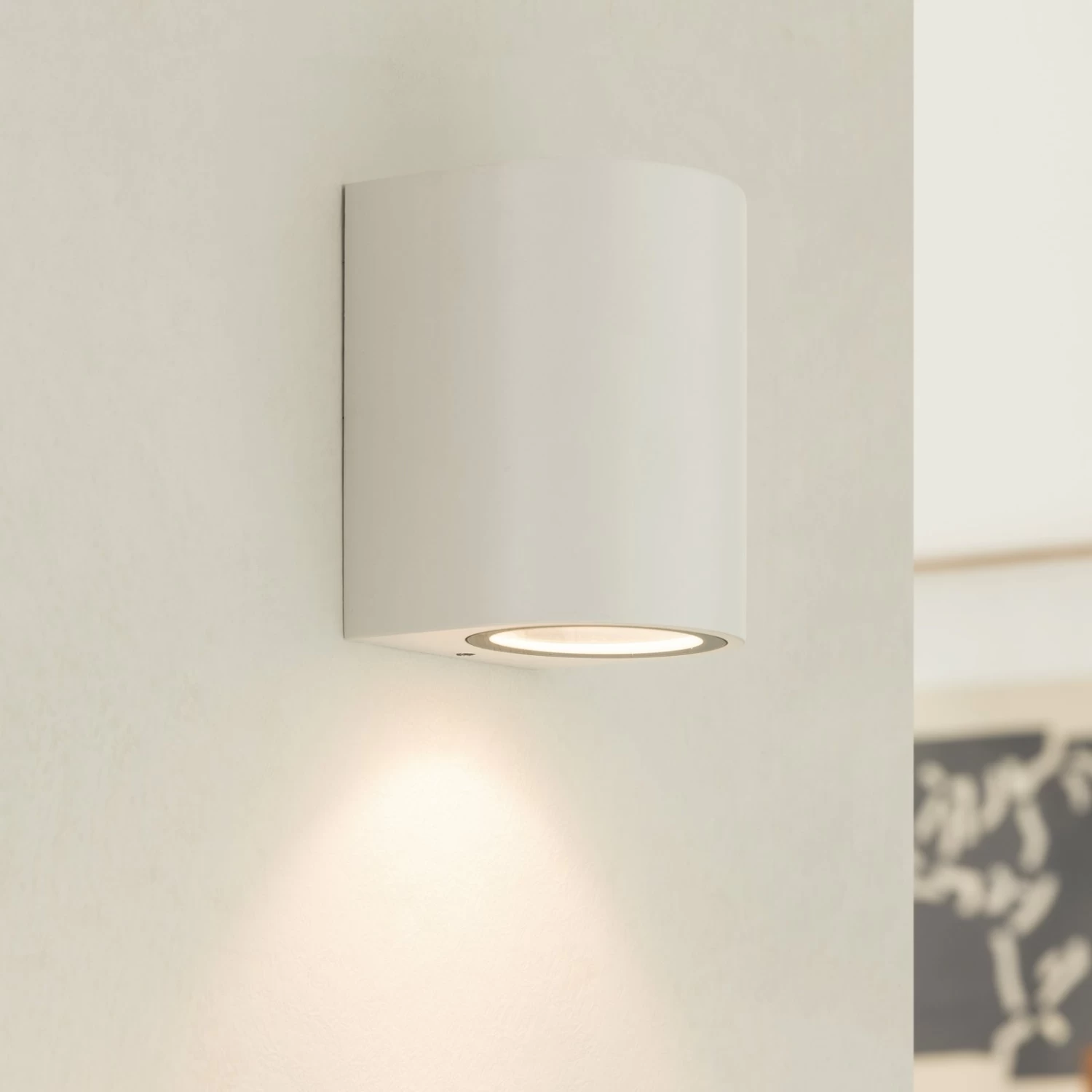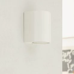 Tetje kombiniert ein simples Design mit einer gewissen Robustheit. Die Außenwandlampe besitzt eine kompakte, zylinderförmige Gestalt und präsentiert sich in einer weißen Farbgebung. Sie ist eher unauffällig und integriert sich unkompliziert in den Baustil eines Hauses. Die Schutzart IP65 macht sie staubdicht und schützt sie gegen Strahlwasser, sodass sie die perfekte Begleiterin für den Außenbereich ist. Die Außenwandleuchte Tetje ist aus Aluminium hergestellt und lässt sich mit GU10 Leuchtmitteln bestücken.