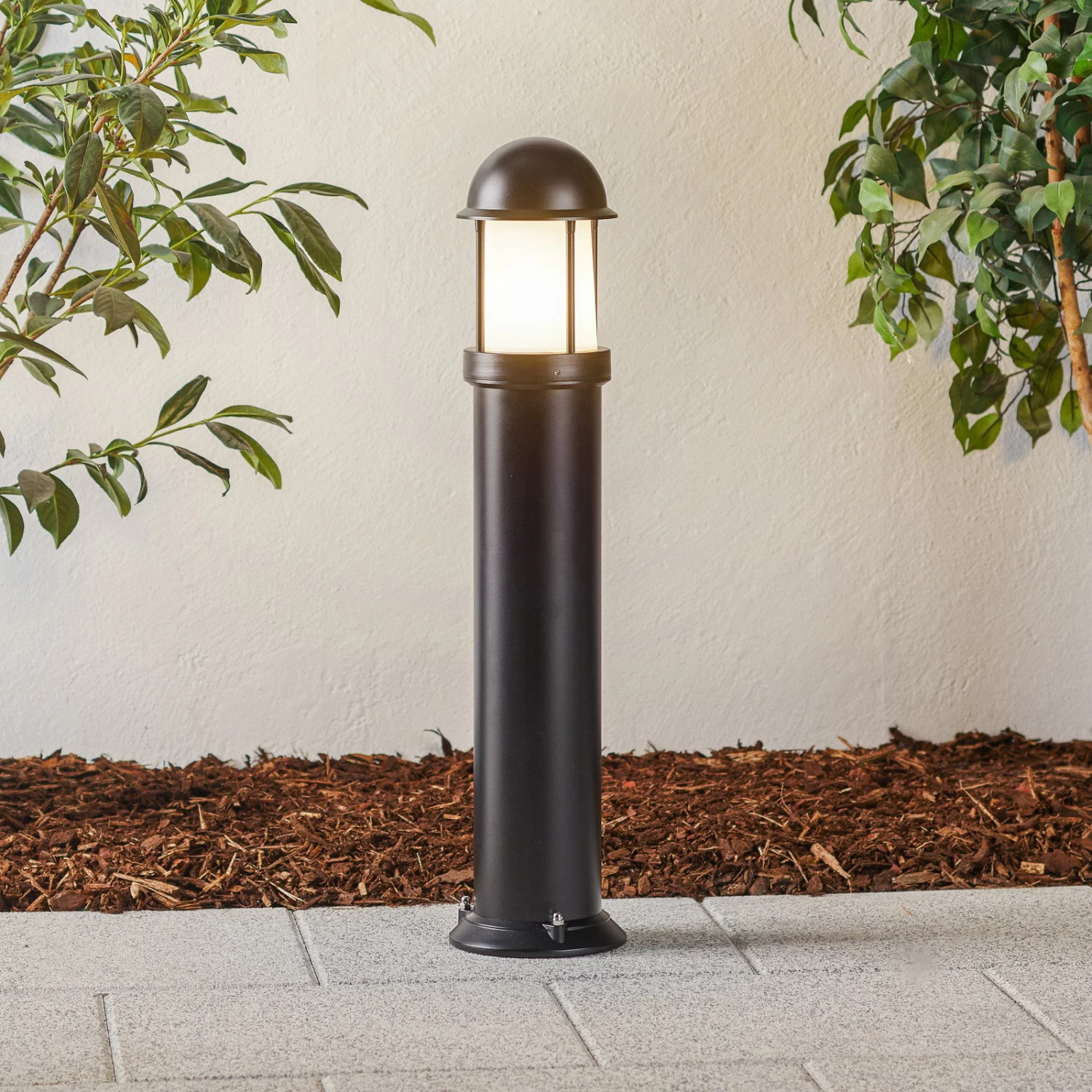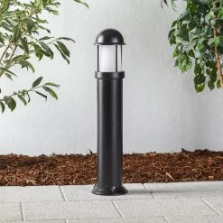 Mason ist nicht nur optisch eine Bereicherung für jede Außenanlage, sondern bietet dank der runden Gestaltungsweise des Schirms strahlend schönes Umgebungslicht. Der zylindrisch geformte, 75 cm hohe Leuchtenkorpus besteht aus witterungsbeständigem Aluminium-Druckguss und ist mit einer abschließenden Pulverbeschichtung überzogen worden. Im oberen Teil gesellt sich zwischen dem abgerundeten Leuchtenkopf der hochwertige Schirm aus opalem Polycarbonat dazu, der durch zierliche Streben optisch unterteilt wurde. Dadurch entsteht ein sehr modernes Erscheinungsbild, welches sich harmonisch in jegliche Außengestaltung einfügt. IP44 schützt Mason vor Regen und Staub.