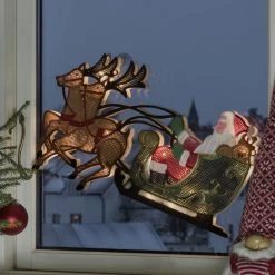 LED-Fensterbild „Rentier mit Weihnachtsmann“ für den Innenbereich
