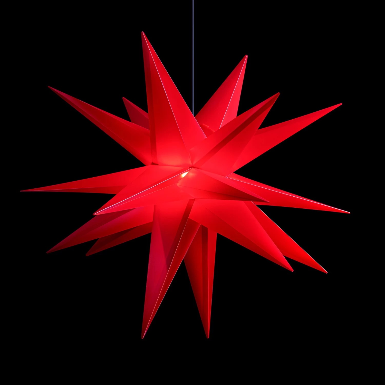 Dieser große Stern mit 18 Zacken überzeugt nicht nur durch seine außergewöhnliche Formgebung, sondern auch durch die robuste Verarbeitung aus Kunststoff. Er ist gegen allseitig eindringendes Spritzwasser geschützt (IP44) und kann unbedenklich z. B. vom Balkon herabhängen, wo er tagsüber schon sehr dekorativ wirkt und abends die Umgebung in wundervoll stimmungsvolles Licht taucht. Mit seiner Größe von 100 cm Durchmesser kann er gar nicht übersehen werden.