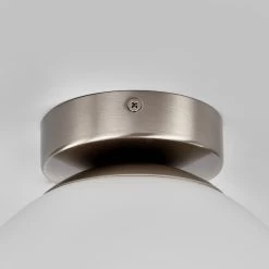 Die dezente Deckenhalterung von Lennie ist vernickelt, während der Rest der Deckenleuchte aus bauchigem Glas besteht, das mit seiner Kugelform sehr harmonisch aussieht. Die Badezimmer-Deckenleuchte ist für den Betrieb mit einer E27-Lampe gedacht und hier kann man ohne Weiteres auch auf die energieeffizienten und langlebigen Retrofit-Lampen mit LED-Bestückung zurückgreifen.