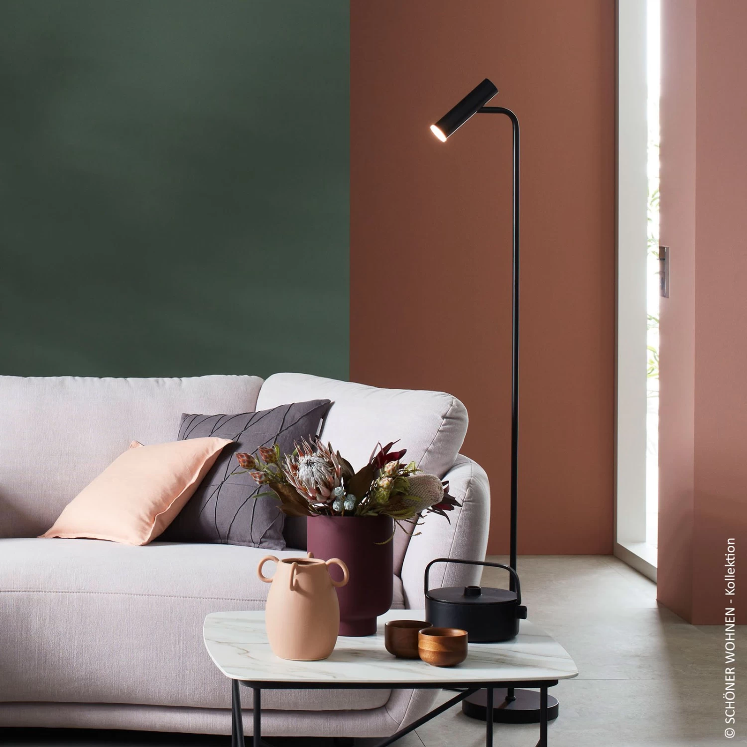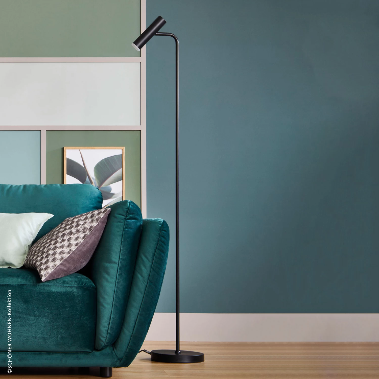 Die filigrane LED-Stehleuchte Stina passt ausgezeichnet zu fast jedem Einrichtungsstil, indem sie durch ihre matt-schwarze Farbe und ihre prägnante, stilsichere Form beeindruckt und wird daher gerne gewählt. Zusätzlich sorgt sie für zielgerichtete Beleuchtung unter anderem beim Lesen durch den dreh- und schwenkbaren Leuchtenkopf. Stina leistet hervorragende Dienste, egal ob im bequemen Sessel oder der komfortablen Couch. Durch ihren Fußschalter an der Zuleitung kann die Leuchte nicht nur bequem an Ort und Stelle ein- und ausgeschaltet, sondern auch in der Helligkeit geregelt werden.