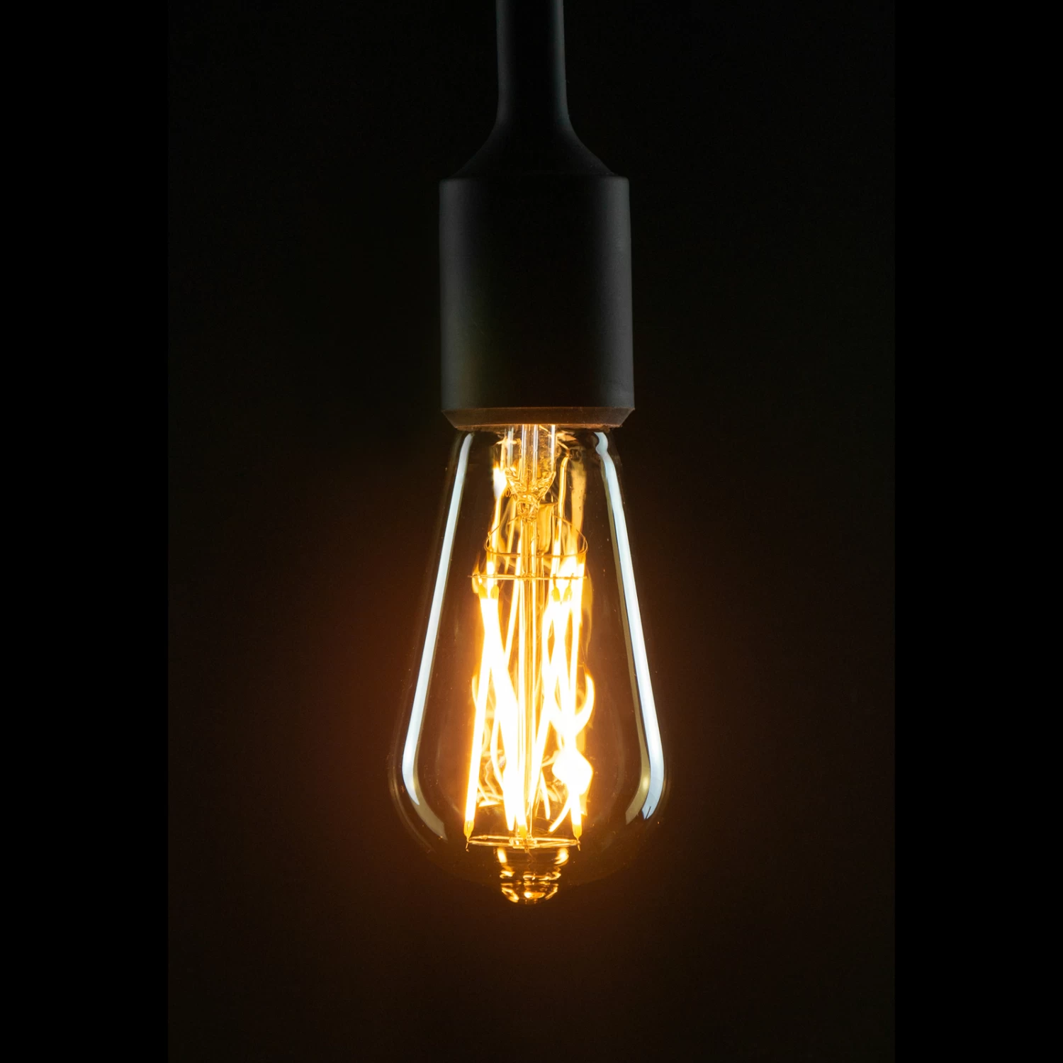 In Rustikaform mit golden getöntem Glas, schönen LED-Filamenten und mit extra warmer Lichtfarbe 2.200 K ist diese LED-Lampe ein Leuchtmittel, das sich hervorragend für den Einsatz in Leuchten ohne Schirm anbietet. Die Helligkeit lässt sich mit den meisten gängigen Dimmern zudem dimmen.