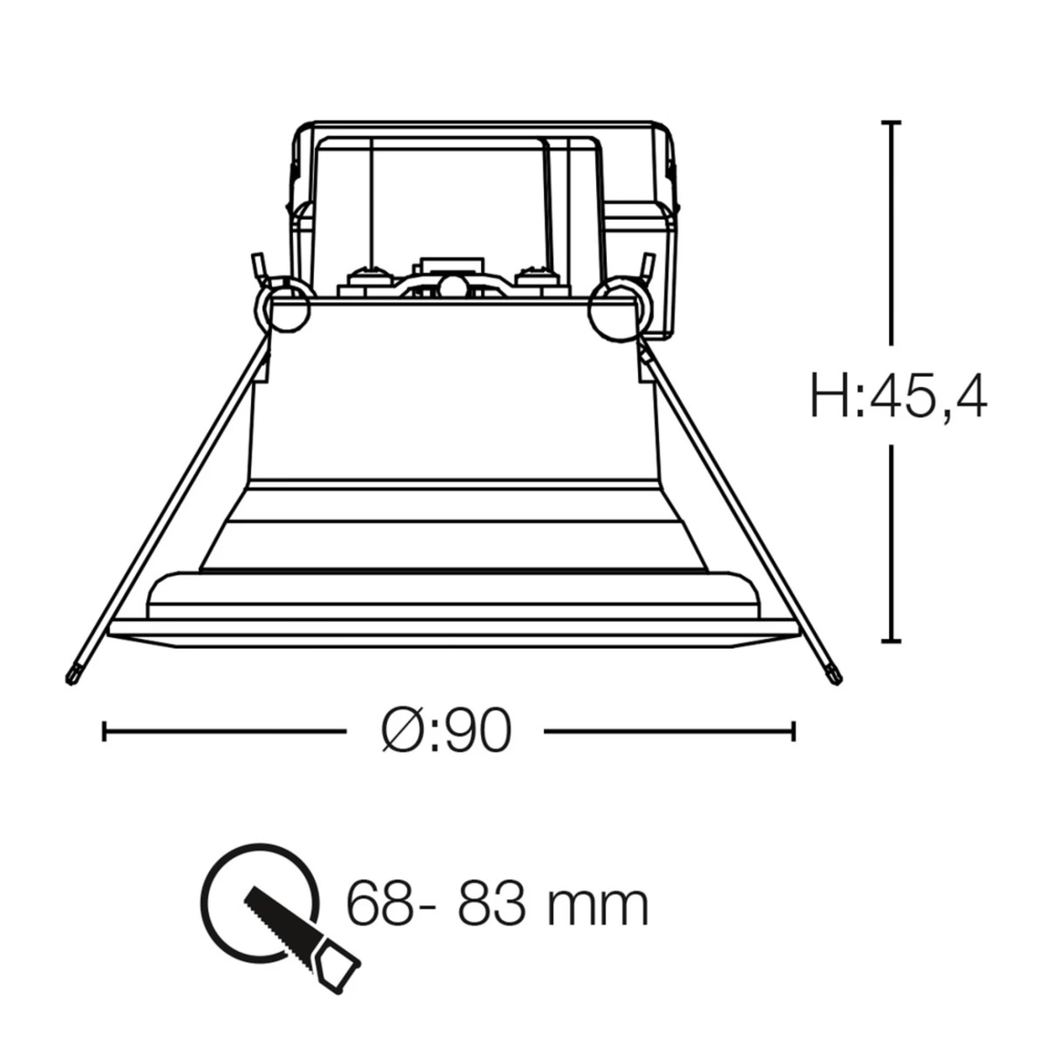 – Montage in Deckenöffnungen mit Ø 6,8 bis 8,3 cm möglich