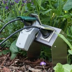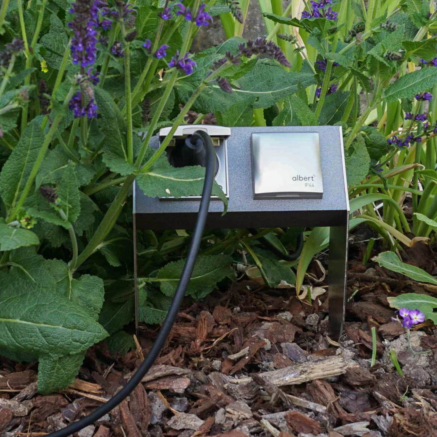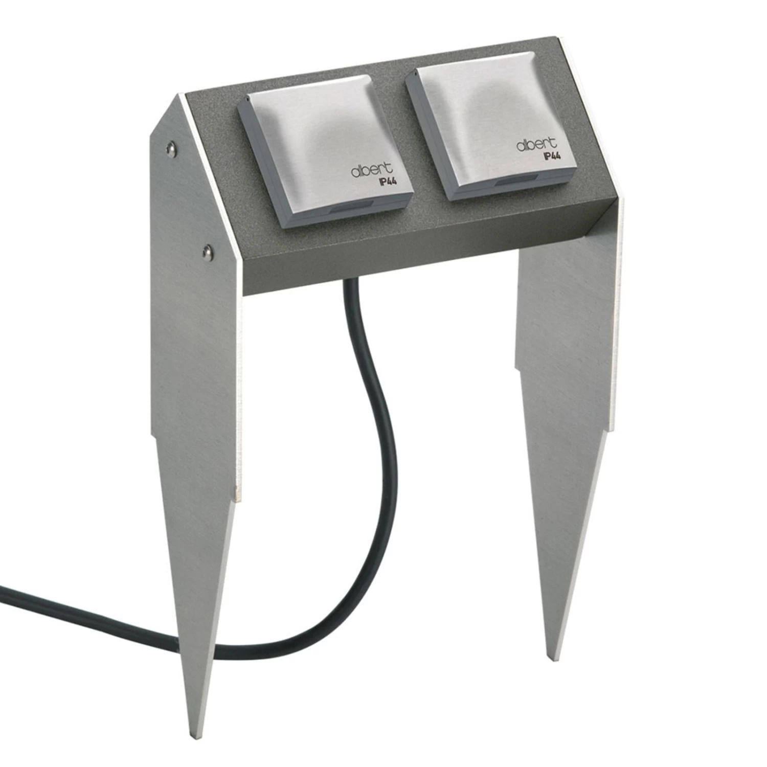 Mit diesem nahezu überall auf dem Grundstück platzierbaren Steckdosenbalken mit zwei Ausgängen lassen sich elektrische Geräte für den Außenbereich komfortabel in der Nähe des Nutzungsortes anschließen. Die Verankerung erfolgt ganz einfach mit den beiden Erdspießen im losen Untergrund. 250 cm langes Anschlusskabel mit Stecker inklusive.