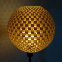 Optisch erinnert dieser kugelrunde Leuchtenschirm so manch einen vielleicht an Kindertage, als man noch hin und wieder an einem Flechtwerk aus Papierstreifen gebastelt hat, das zum Schluss eine dekorative Webstruktur besessen hat. Wie eine solche Oberfläche erscheint nämlich auch der Schirm der Stehleuchte mit dem hellen Farbton, nur dass es sich eigentlich um zahlreiche schachbrettartige Auslassungen handelt, die man auf dem Schirm sieht. Das ist bei eingeschalteter Leuchte ein wahres Vergnügen, weil das die Lichtwirkung besonders effektvoll macht. Auch im Raum sieht man selbstverständlich entsprechende Effekte aus Licht und Schatten mit ihrer einzigartigen Wirkkraft.
