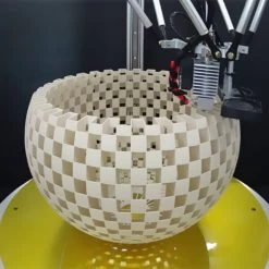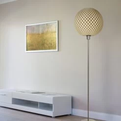 Design-Stehleuchte Flechtwerk mit kugelförmigem Schirm, der im 3D-Druckverfahren gefertigt worden ist