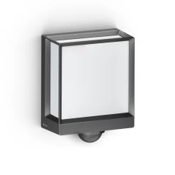 Qualität im Quadrat – die LED-Außenwandleuchte L 40 SC von STEINEL mit einem Gehäuse aus anthrazitfarbenem Aluminium und einer Abdeckung aus opalweißem Kunststoff ist mit einem Bewegungssensor ausgestattet, der die warmweiß leuchtenden LEDs automatisch einschaltet. Durch die integrierte Bluetooth-Mesh-Technologie kann die Leuchte bequem per kostenloser STEINEL-App eingestellt und mit anderen Leuchten vernetzt werden.