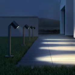 Spot Way präsentiert sich als elegant designte Grundstücks- und Wegebeleuchtung aus Aluminium. Die Leuchte ist anthrazitfarben lackiert und fügt sich optisch in viele Grundstücksgestaltungen ein.