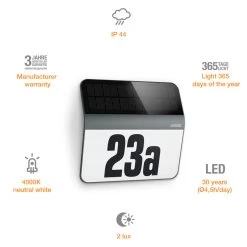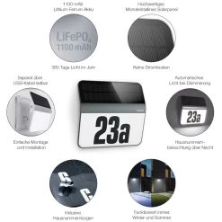 Solarbetriebene Hausnummernleuchte LH-N mit Dämmerungsschalter