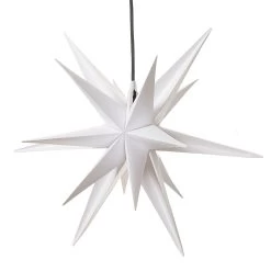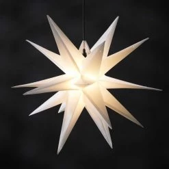 Dieser vielzackige Stern ist aus wetterfestem Kunststoff gearbeitet und mit der Schutzart IP44 auch für den Einsatz im Außenbereich gerüstet, denn auch stärkere Witterungseinflüsse wie allseitiges Spritzwasser können seiner Schönheit nichts anhaben. Der Stern zieht nicht nur aufgrund seiner Größe mit einem Durchmesser von ca. 50 Zentimetern die Menschen in seinen Bann, sondern auch durch seine Leuchtkraft. Seine schlichte Schönheit verbreitet helles, weithin sichtbares Licht in der Dunkelheit der Wintermonate und stimmt auf verheißungsvolle Weise auf die Weihnachtszeit ein.