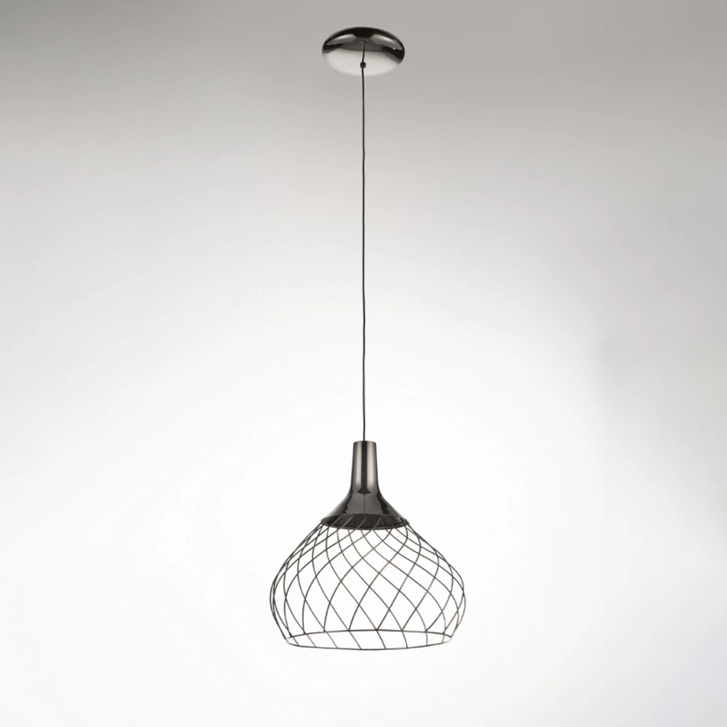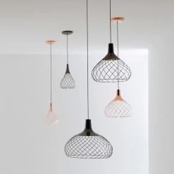 Die schöne LED-Hängeleuchte Mongolfier P1 wird vor allem durch ihren schmückenden Käfigschirm in Schwarz zum auffälligen Blickfang. Dieser besitzt sehr schmale und somit elegante Eisenstreben, die sich in gedrehter Form umeinander winden und so zu einem schön anzusehenden Geflecht werden. Hier ist die Stilrichtung unverkennbar, denn der Käfig und die kupferne Lackierung gehören hundertprozentig zum Vintagestil.