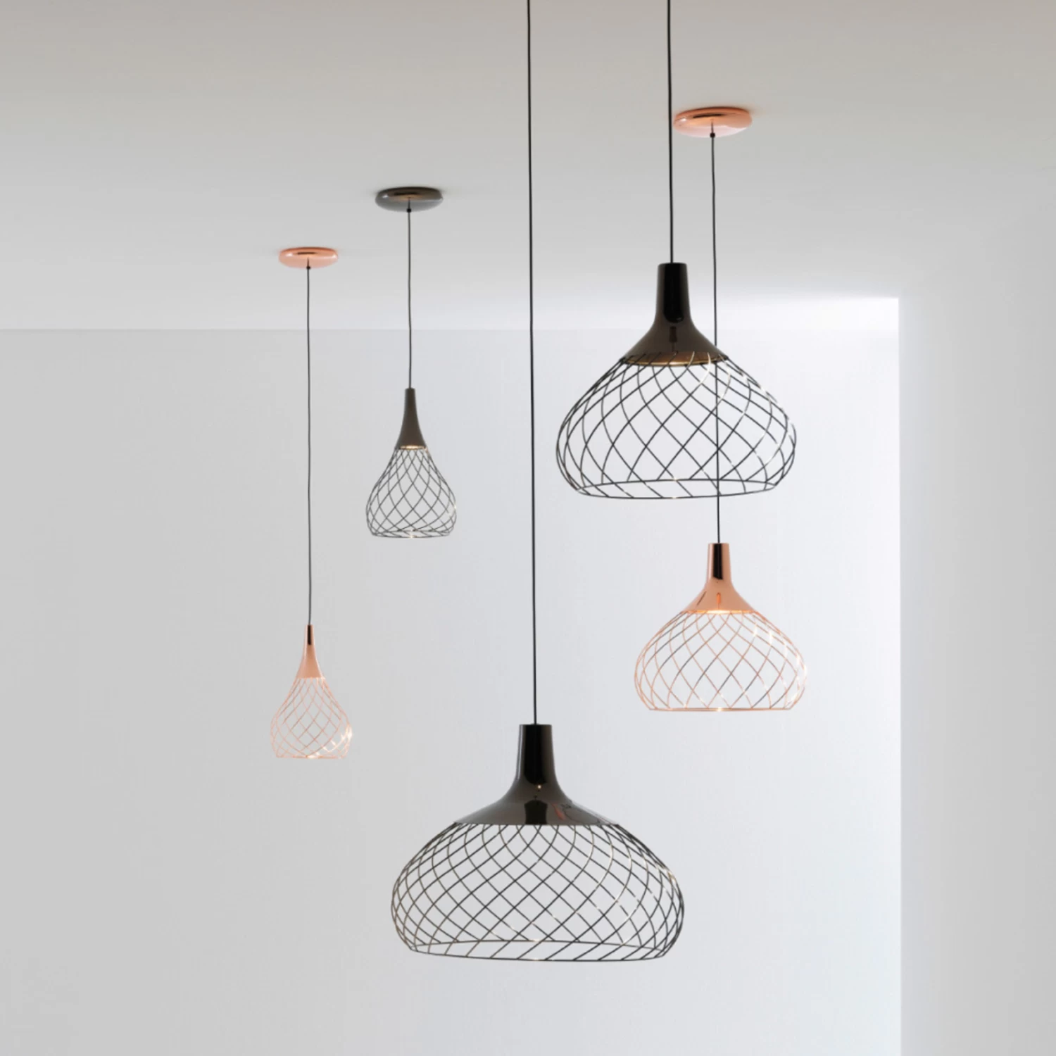 Eine kleine Haube über dem Käfig vervollständigt den Look und die schwarze Kabelabhängung sorgt für den nötigen Halt. Aber auch technisch hat Mongolfier P1 etwas Tolles zu bieten: Sie ist mit Array-LEDs ausgestattet, die sich ganz einfach sowohl in der Helligkeit als auch in der Lichtfarbe extern via Wanddimmer variieren lassen. Die Spanne reicht hierbei von 1.800 Kelvin bis 3.000 Kelvin. So kann sie wunderschöne Beleuchtungsszenarien erschaffen und verschiedene Atmosphären und Stimmungen hervorrufen. Um die Warm-Tune-Funktion nutzen zu können, wird der im Zubehör hinterlegte Dimmer benötigt.