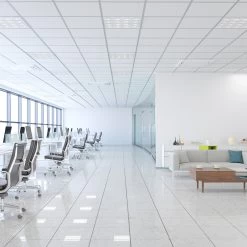 Das LED-Einbaupanel mit dem für Rasterdecken passenden Maß ist besonders gut für Büros, Besprechungsräume oder Breakout-Bereiche geeignet. Die Leuchte aus Stahl mit integriertem Reflektor mit Totalreflexionslinsen strahlt universalweiße Beleuchtung mit geringer Blendung aus und kann dank des integrierten, DALI-dimmbaren LED-Treibers über einen DALI-Dimmer auch gedimmt werden.