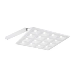 Das LED-Einbaupanel mit dem für Rasterdecken passenden Maß ist besonders gut für Büros, Besprechungsräume oder Breakout-Bereiche geeignet. Die Leuchte aus Stahl mit integriertem Reflektor mit Totalreflexionslinsen strahlt universalweiße Beleuchtung mit geringer Blendung aus und kann dank des integrierten, DALI-dimmbaren LED-Treibers über einen DALI-Dimmer auch gedimmt werden.