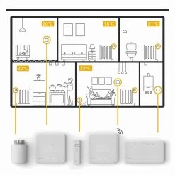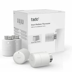 – Lieferumfang: 5 tado° Smart Heizkörper-Thermostate, 10 AA Batterien, 5 Adaptersätze, tado° Internet Bridge, UK-Netzteil, EU-Netzteil, USB-Kabel, Ethernet-Kabel