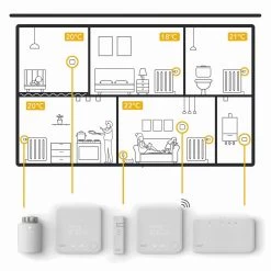 Das Starter Kit V3+ wird in diesem Angebot mit insgesamt drei Heizkörper-Thermostaten geliefert und ist um weitere Smart (Heizkörper-)Thermostate erweiterbar. Mit dem tado° Extension Kit (siehe Zubehör) kann zudem auf den zentralen Heizkessel etc. zugegriffen werden, wodurch sich weitere Kosten einsparen lassen.