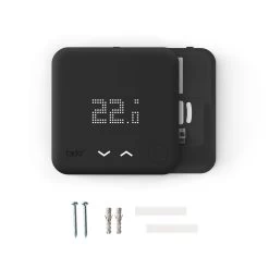 Das Starter Kit V3+ von tado° bietet die volle Funktionalität zur bedarfsgerechten Regelung des Raumklimas via App. Die Programme können manuell oder automatisch eingestellt werden, um die Heizkosten zu senken. Das smarte Thermostat, das hier im Doppelpack kommt, kommuniziert über Funk mit der Bridge, die über den Router die Verbindung zum Internet herstellt. Die Thermostate ersetzen herkömmliche verkabelte Thermostate im Wohnraum, während das separat erhältliche Extension Kit die Hauptheizung steuert. Zur Steuerung mehrere Zonen lassen sich weitere smarte (Heizkörper-)Thermostate hinzufügen.