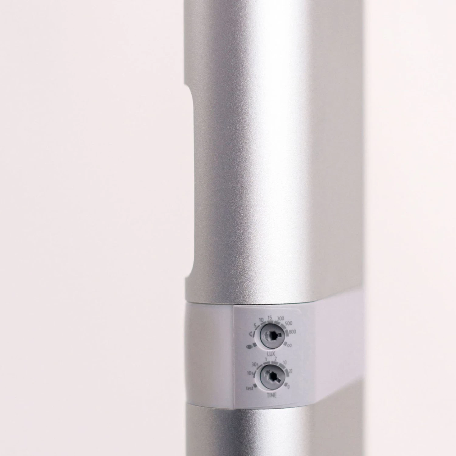 Der Bewegungsmelder schaltet die Leuchte nur dann ein, wenn tatsächlich Licht benötigt wird. Er erfasst Bewegungen in einem Winkel von 180°, hat eine Reichweite von ca. 12 Metern. Der Einstellbereich der Umgebungshelligkeit des Tageslichtsensors liegt bei 2 bis 800 Lux. Die Nachlaufzeit des Lichts lässt sich von 10 Sekunden bis 20 Minuten variieren.