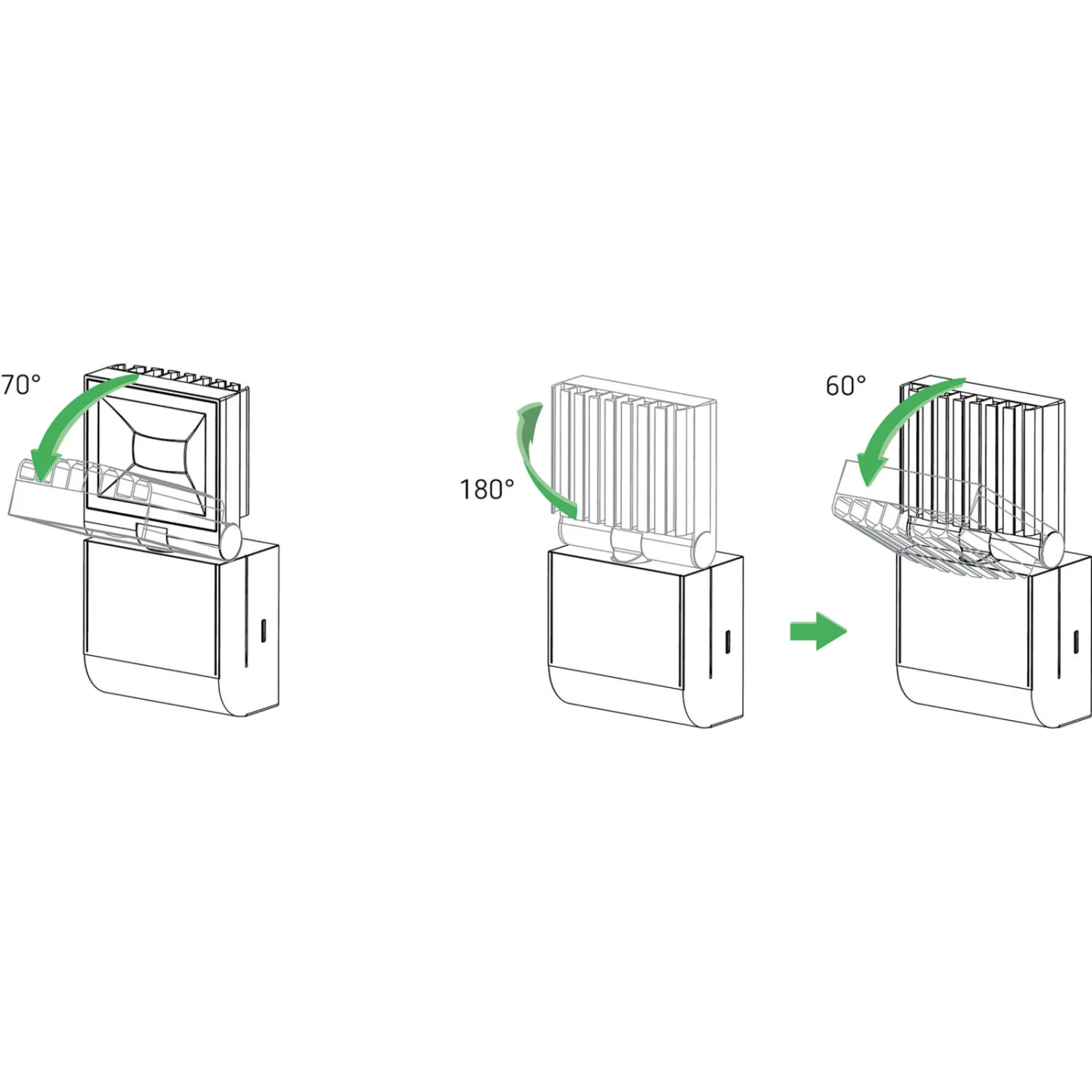 Mit diesem Außenstrahler mit eingebautem Bewegungsmelder wird eine bedarfsgerechte und somit auch energiesparende Außenbeleuchtung möglich. Der LED-Wandstrahler theLeda S10 ist sehr beweglich einstellbar – ± 40° drehbar, um 180° zur Wand drehbar sowie um 70° nach unten schwenkbar – und mit einem Bewegungsmelder bestückt. Die Beleuchtungssteuerung erfolgt automatisch in Abhängigkeit von Anwesenheit und Helligkeit. Über drei Potentiometer im Sensorkopf werden Leuchtdauer, Umgebungshelligkeit-Auslöseschwelle und Funktionsmodus eingestellt.