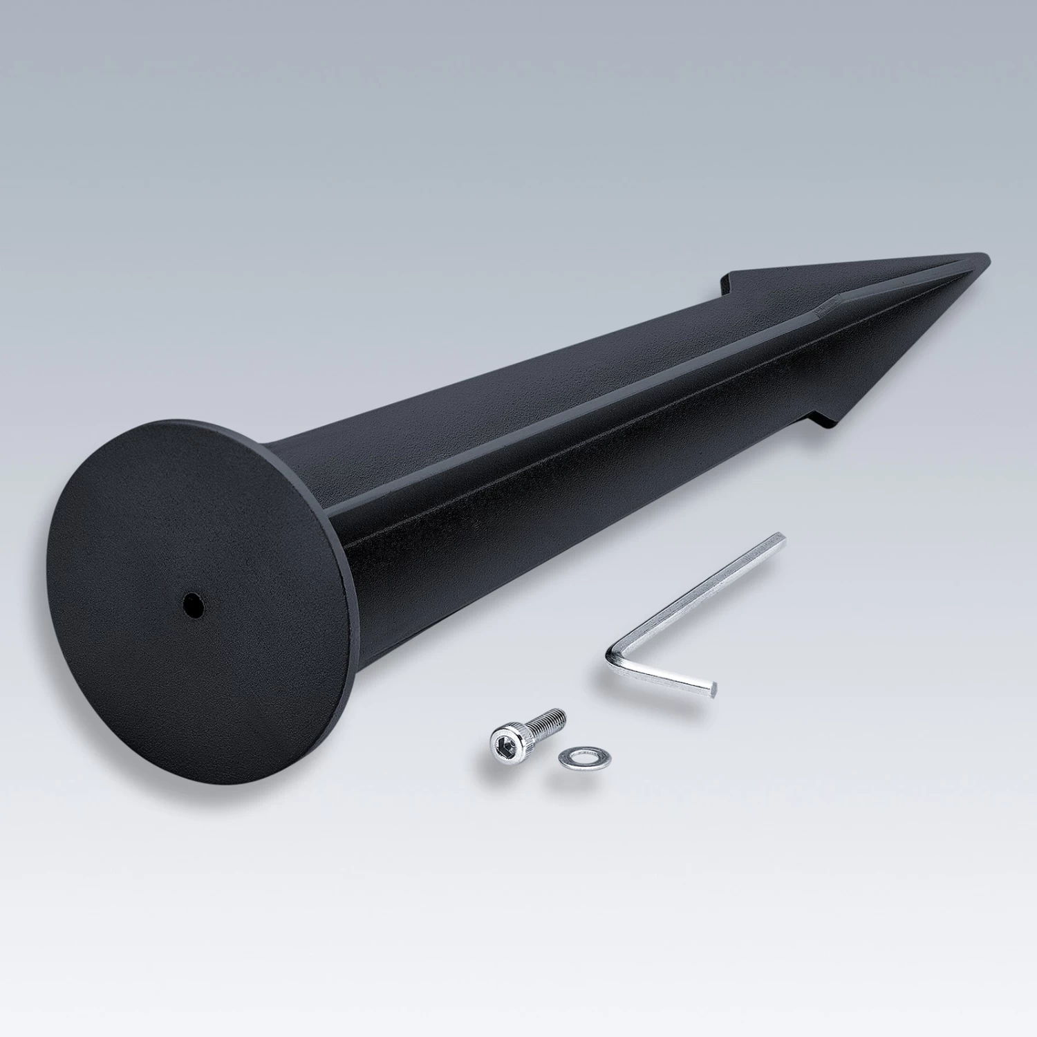 Um die Außenstrahler der Serie Leonie Varioflex in unbefestigten Untergründen zu fixieren, lässt sich dieser Erdspieß verwenden. Inklusive Montagematerial.