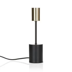 Schwarz-goldene Tischleuchte Axon mit freiem Blick auf das Leuchtmittel