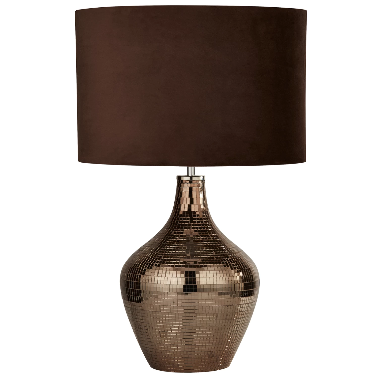 Tischleuchte Mosaic mit braunem Schirm aus Wildleder