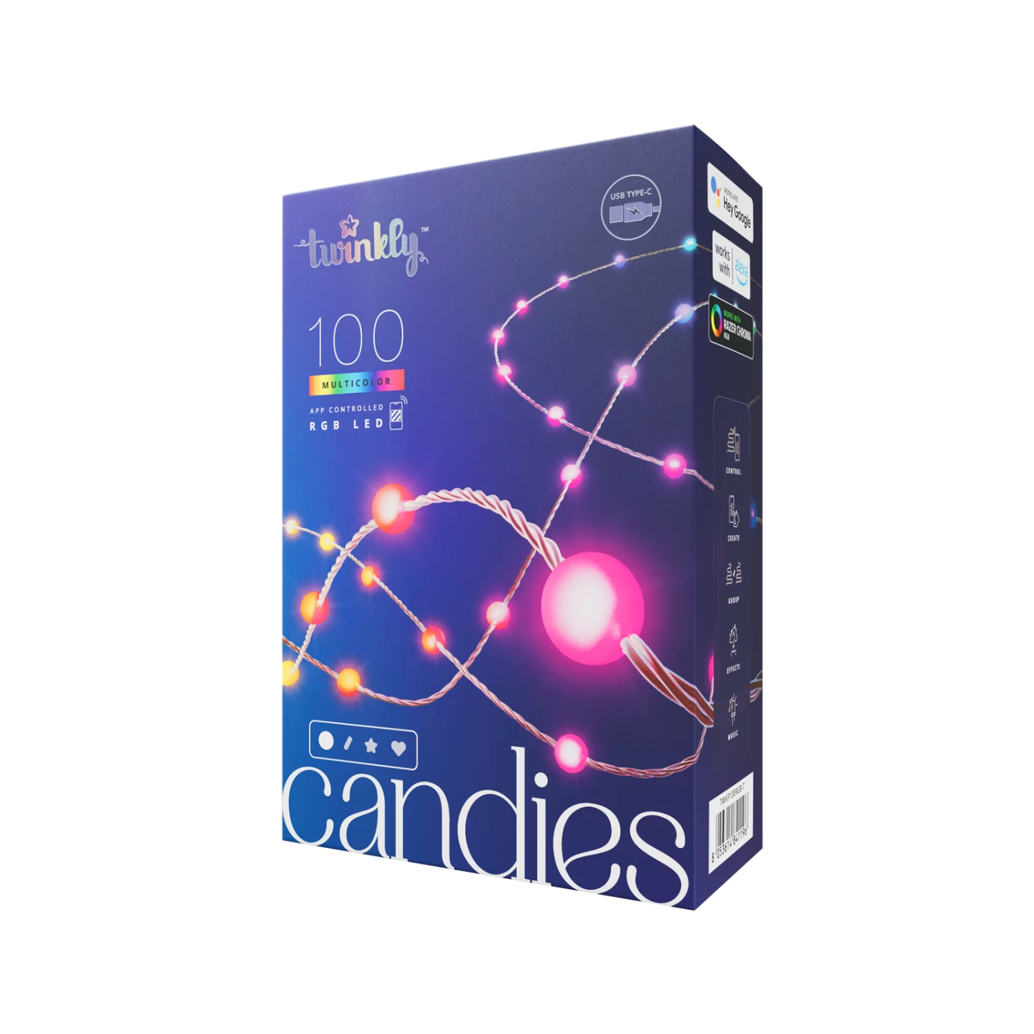 Die Steuerung erfolgt via WLAN- oder Bluetooth-Verbindung mit Hilfe der kostenlosen Twinkly App, die für Android und iOS kostenfrei bereitsteht. Darüber hinaus ist auch die Sprachsteuerung mit Amazon Alexa, dem Google Assistant oder Apple Siri möglich. Auch mit dem Razer Chroma™ RGB-System ist Candies kompatibel.