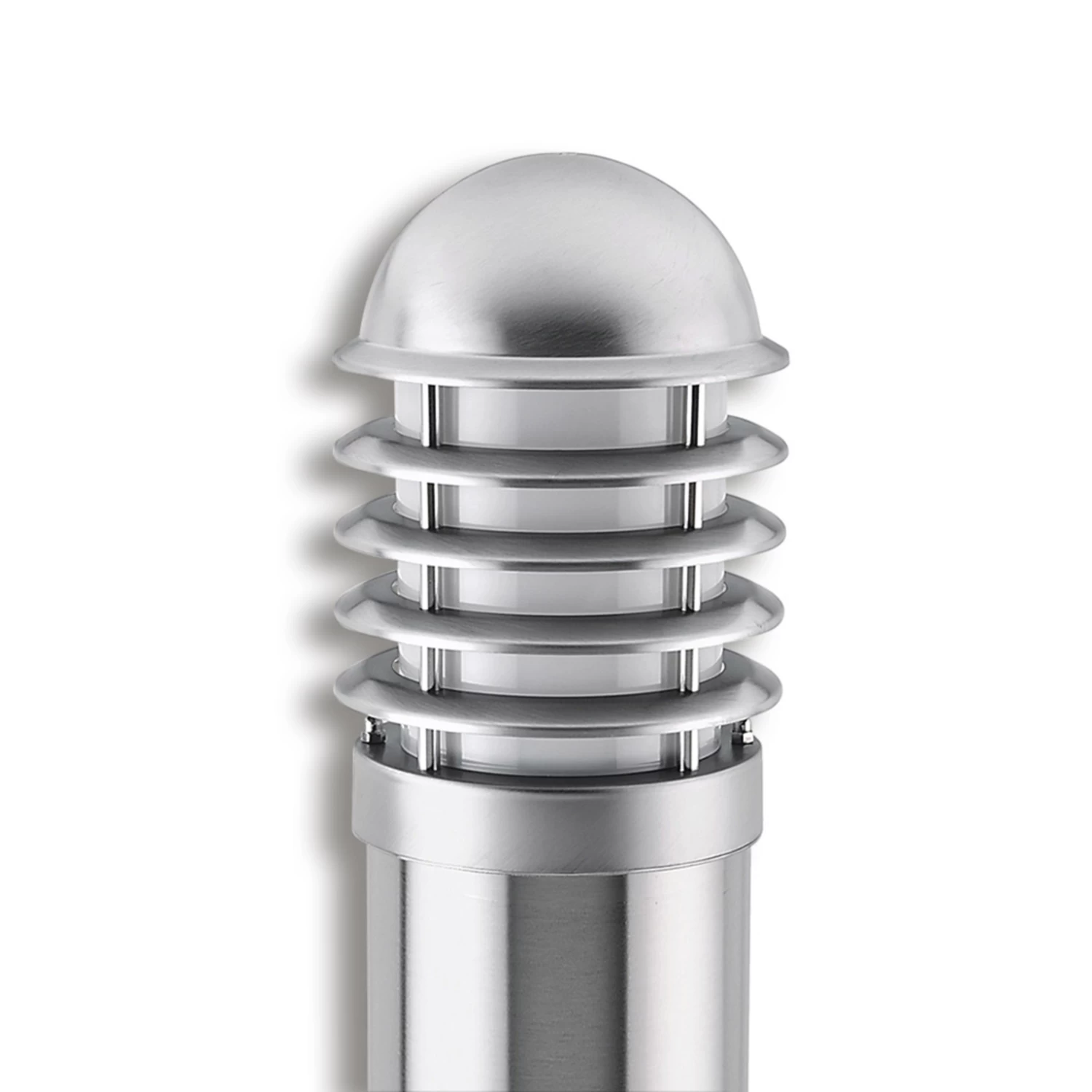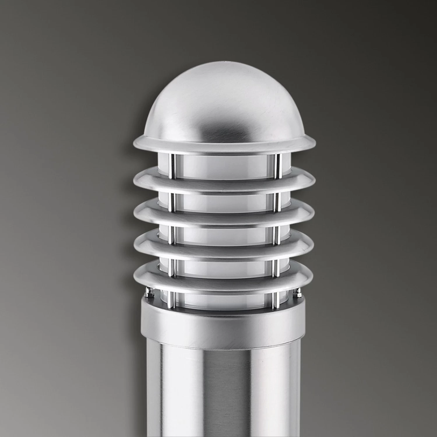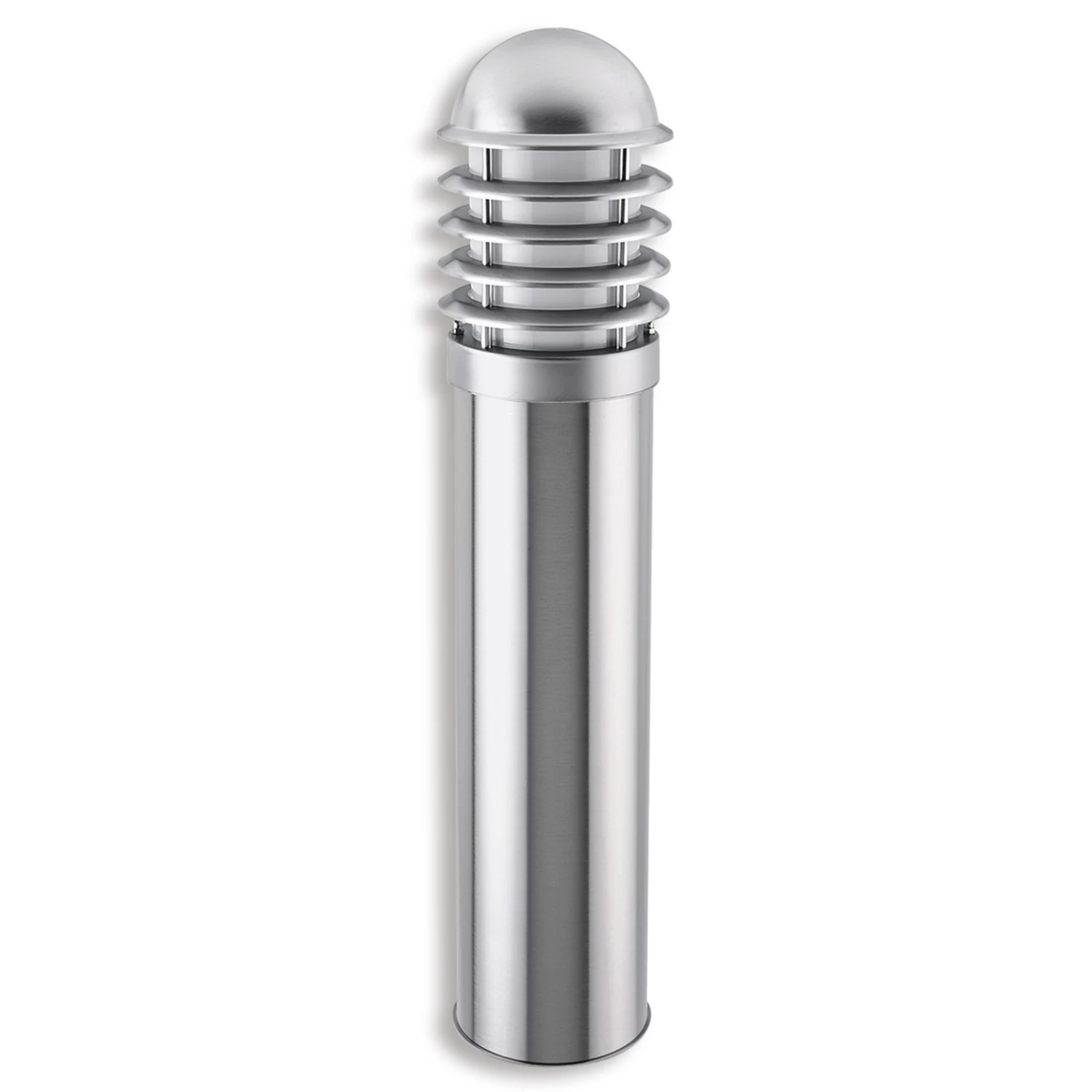 Die abgerundete Wegeleuchte Klaas ist hochwertig verarbeitet und eignet sich durch die Verwendung seewasserbeständigen Edelstahls auch zum Einsatz in Küstennähe. Ein Raster schützt nicht nur den Diffusor aus Polycarbonat, es sorgt auch für Blendfreiheit nach oben und für eine moderne Optik der Wegeleuchte Klaas, die sich auch zum Einsatz energiesparender Leuchtmittel oder LED-Lampen eignet und mit Schutzart IP44 ausgerüstet ist.